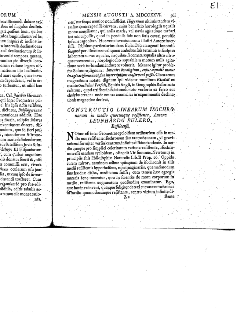 原名:Constructio linearum isochronarum in medio quocunque resistente 中文译名:在任意阻力介质中等时曲线的构造 作者:Leonhard Euler(译:莱昂哈德·欧拉) 出版日期:1726 语言:拉丁文 来源:Euler Archive(欧拉档案馆) 下载 Get it!Download × 版权说明 资源属于公共领域(Public Domain),使用时请遵守国际公约和您所在司法辖区的法律,用户对资源的使用本站概不负责。